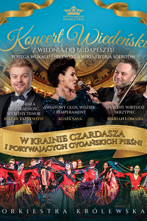 Koncert Wiedeński „W Krainie Czardasza” to potęga wirtuozerii i wokalu, która wzbudza entuzjazm nie tylko dzięki odmiennym możliwościom głosowym, ale także poprzez porywającą energię na scenie, która udziela się publiczności. Każdy koncert jest świętem muzyki wokalnej, a publiczność wprost uwielbia ich miły i autentyczny sceniczny wizerunek. Zapraszamy wszystkich melomanów i miłośników światowej wirtuozerii i wokalistyki w klimatyczną podróż w dobrym muzycznym stylu do przebogatej Krainy Czardasza.
